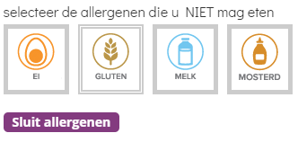 Selecteer in onze ingrediëntenzoeker de allergenen die u niet mag eten. Ons systeem zal automatisch de broodjes die standaard deze allergenen bevatten niet tonen.